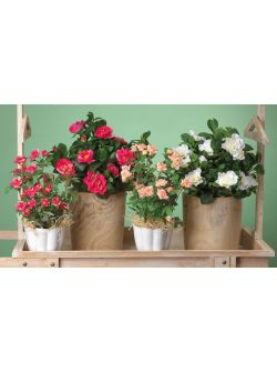 Camelia Rosa Intenso con 6 Fiori e 2 Bocci