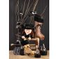 Befana in Piedi in Tessuto Grigio/Nero con Paillettes e Sacco