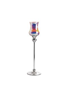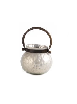 Portacandela Tondo Silver/White in Vetro