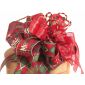 Nastro Tessuto Rosso Foglie Verdi e Bacche Oro con Glitter