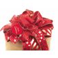 Nastro Tessuto Rosso Foglie Verdi e Bacche Oro con Glitter