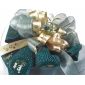 Nastro Tessuto Rosso Foglie Verdi e Bacche Oro con Glitter