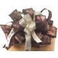 Nastro Tessuto Rosso Foglie Verdi e Bacche Oro con Glitter