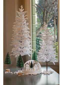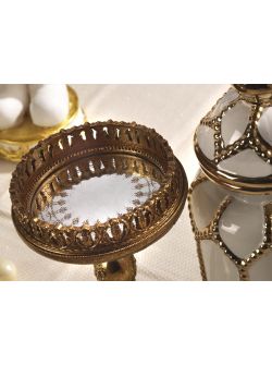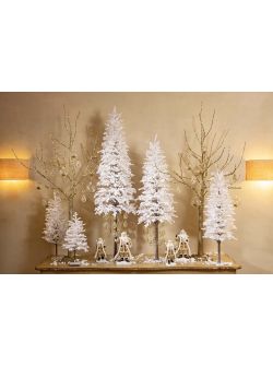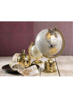 Renna in Resina Bianca e Oro in Piedi su Rocce