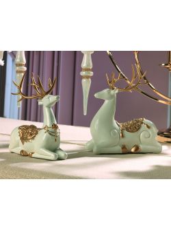 Renna Seduta in Resina Bianca e Oro con Fiori