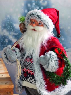 Santa Claus in Tessuto Rosso/Grigio con Pelliccia