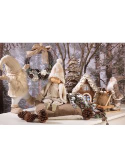 Santa Claus in Tessuto Marrone e Beige in Piedi su Slitta