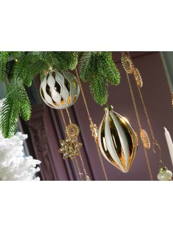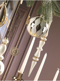 Sfera di Vetro Decoro a Spicchi Bianco/Rosso con Agrifoglio