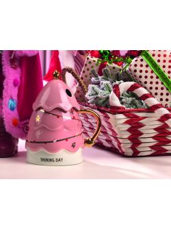 Tazza/Contenitore in Ceramica Alberello Rosa con Manico e Coperchio