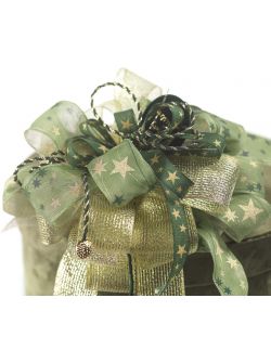 Nastro Tessuto Verde Stelle Oro con Glitter