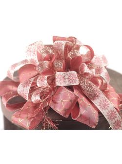 Nastro Tessuto Animato Crema Fiocchi di Neve Rosa