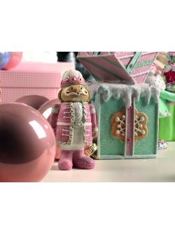 Set Schiaccianoci in Resina Rosa e Bianchi con Glitter