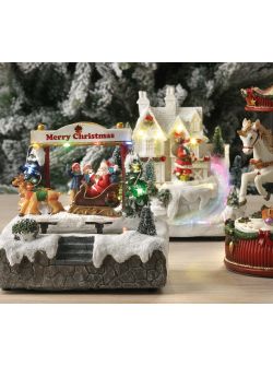 Babbo Natale in Ceramica su Aereo Bianco con Led e Musica