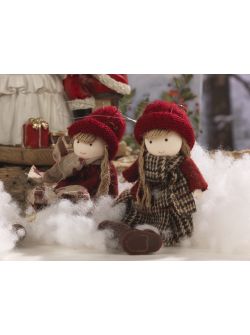 Set Bamboline Appendibili in Tessuto con Cappello di Lana Rosso