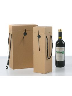 Scatola Bottiglie Kraft Avana con Separatore Interno, Manici in Corda e Chiusura Neri