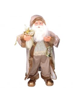 Santa Claus in Tessuto Bianco e Oro con Regali