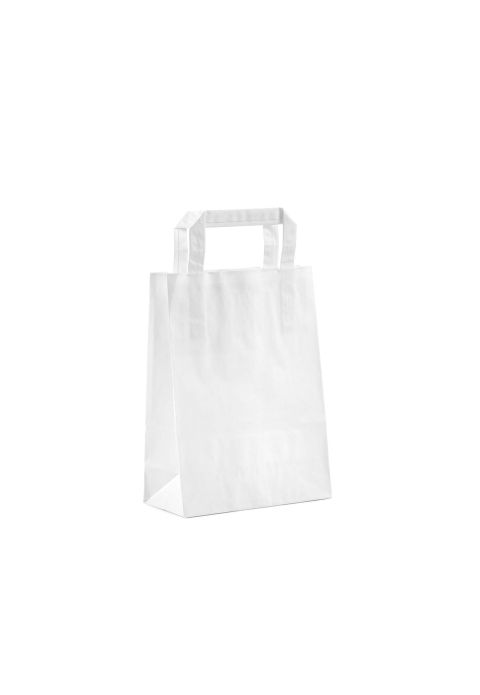 La borsa in carta Kraft con maniglia piatta è estremamente versatile e si distingue per le sue intramontabili caratteristiche di semplicità e praticità. Si tratta di una shopper resistente e ideale per contenere vari generi di articoli e per i vari usi quotidiani. La carta Kraft bianca o avana è particolarmente durevole e il suo design è semplice e funzionale. Per questo è una delle buste in carta più vendute, oltre ad essere perfetta per essere personalizzata con il proprio logo.