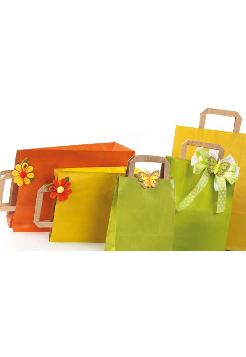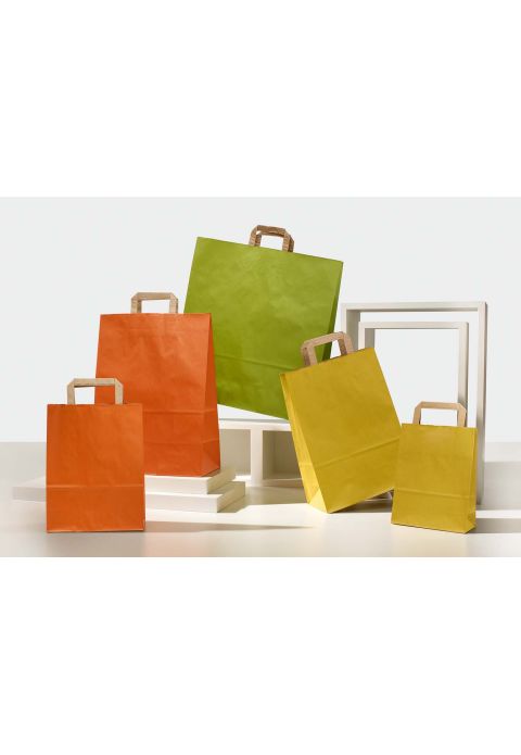 Tra le buste colorate, la Shopper in carta kraft con maniglia piatta è senza dubbio una delle più economiche, pratiche e convenienti. Disponibile in diverse tonalità, si presta a tantissimi abbinamenti di colori, usi e personalizzazioni. Può essere utilizzata per gli articoli più svariati e per ogni tipo di attività. La maniglia di colore avana crea sulla busta un interessante effetto bicolore che aggiunge stile e particolarità alla shopper in carta. La carta Kraft è particolarmente durevole e il suo design è semplice e funzionale, cosa che la rende una busta particolarmente diffusa e molto interessante da personalizzare abbinando il colore al proprio logo.