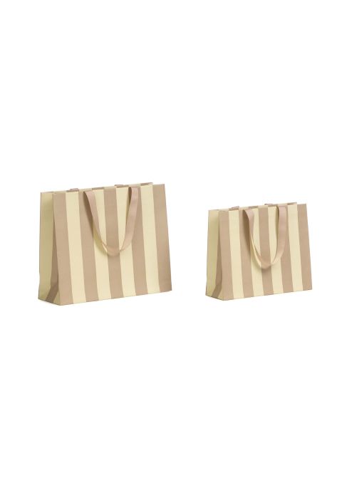 Shopper Carta Stripes Tortora/Beige con Maniglia in Grosgrain