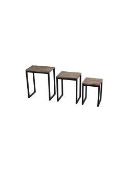 Set Tavolini in Legno Teak con Struttura in Ferro