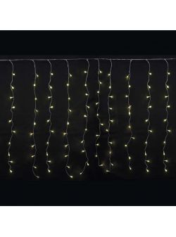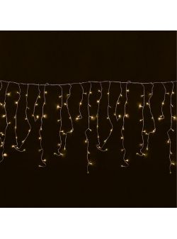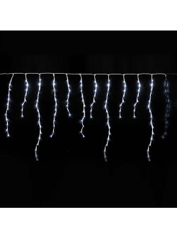 Misura cm 100x200h. Prolunga da 3 metri. Trasformatore IP44 incluso. Per uso Interno/Esterno. Distanza tra stalattiti di 10 cm e led da 5 mm. Giochi luce fredda e filo trasparente- Funzione memory. Prolungabile max 3 tende.